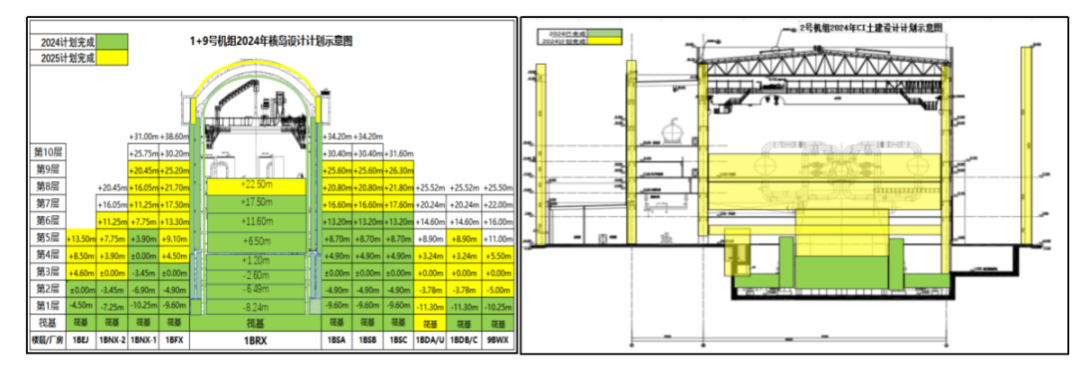 ▲1號(hào)機(jī)組核島、常規(guī)島土建施工圖出版進(jìn)度圖