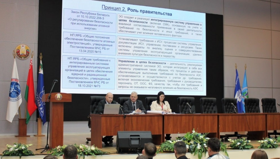 質量副總干事亞歷山大·埃林宣布了國際組織(IAEA和WANO)的基本安全原則、白俄羅斯共和國立法的要求以及監管機構的監管文件。單獨考慮了核能設施管理系統相關問題,重點提高了管理人員在白俄羅斯核電站機組運行中的作用。