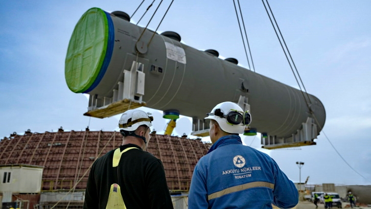 首臺大型設備——給水儲備罐已安裝到土耳其阿庫尤核電站3號機組汽輪機房內。
