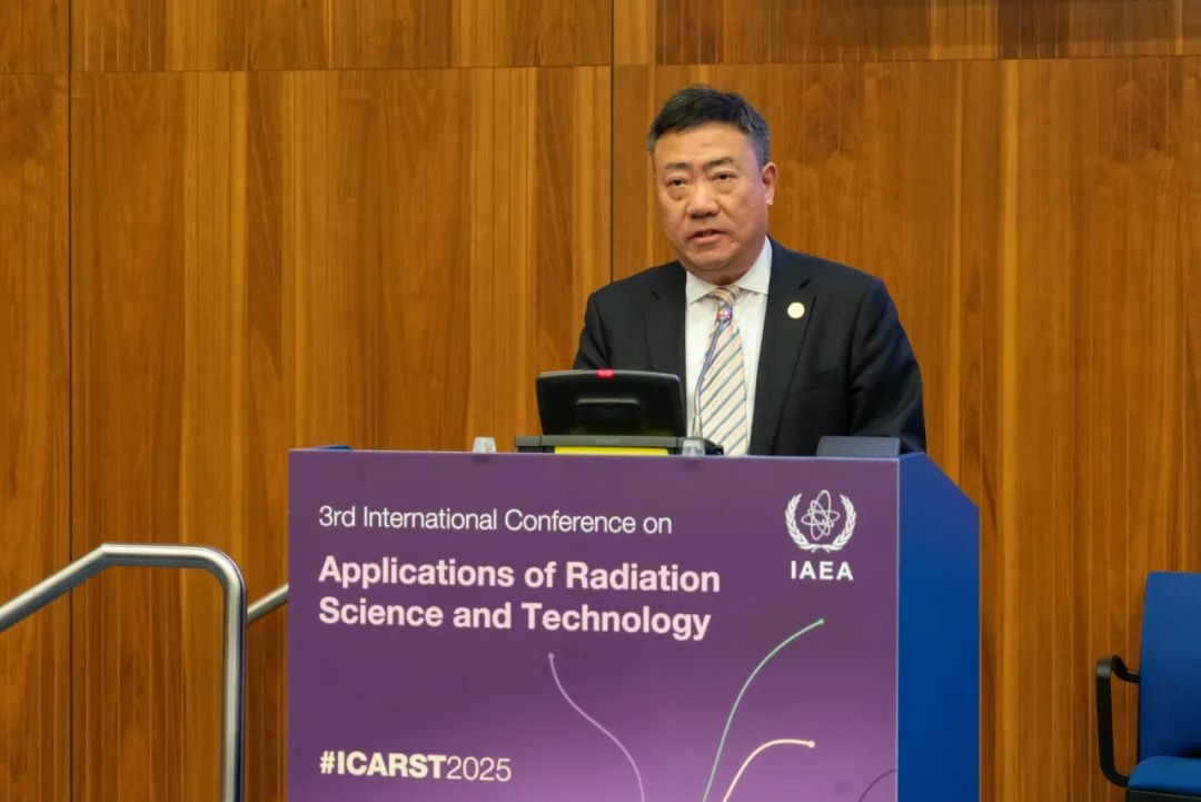 7篇大會口頭報告中,既有來自行業(yè)龍頭企業(yè)的實踐經(jīng)驗,也包含科研機構(gòu)的前沿探索。中國同位素與輻射行業(yè)協(xié)會國際合作分委會主任申立新以“中國輻射科學技術(shù)產(chǎn)業(yè)新進展與發(fā)展趨勢”為題,向全球同行系統(tǒng)梳理了中國核技術(shù)應用產(chǎn)業(yè)的規(guī)?;l(fā)展路徑。他在報告中指出,中國輻照加工產(chǎn)業(yè)年產(chǎn)值已突破200億元,電子束處理工業(yè)廢水、輻射固化裝飾板等“綠色技術(shù)”的產(chǎn)業(yè)化應用規(guī)模居全球前列,同時強調(diào)中國正與IAEA深度協(xié)作,助力發(fā)展中國家構(gòu)建輻射安全與應用體系。中國同輻則聚焦輻射技術(shù)助力人類健康、環(huán)境保護與可持續(xù)發(fā)展,分享了中核集團在核醫(yī)療、工業(yè)輻照等場景下的應用方案。