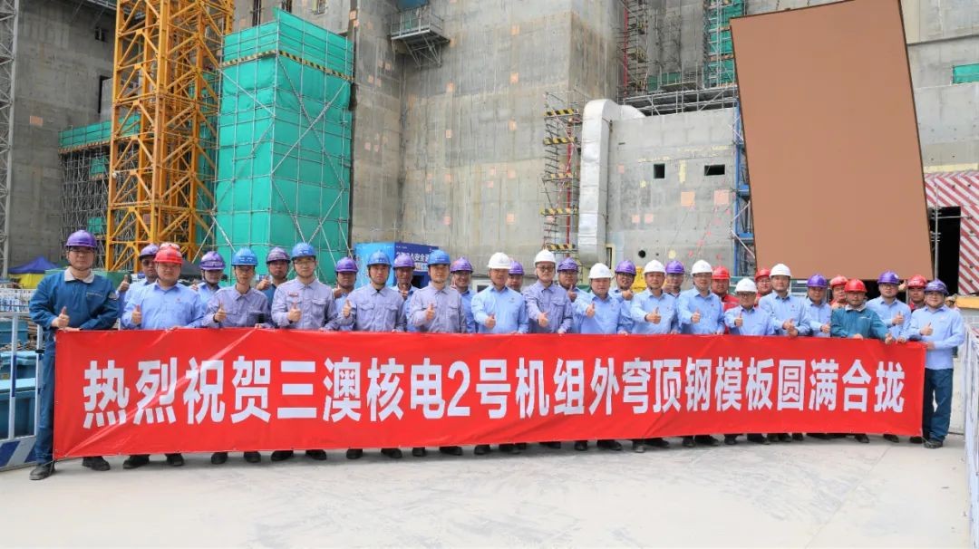 2025年5月27日10時(shí)33分,隨著最后一塊鋼模板分塊嵌入外穹頂,中核華興承建的三澳核電項(xiàng)目2號(hào)機(jī)組外穹頂鋼模板圓滿合攏,為2號(hào)機(jī)組穹頂全面封頂?shù)於藞?jiān)實(shí)的基礎(chǔ)。