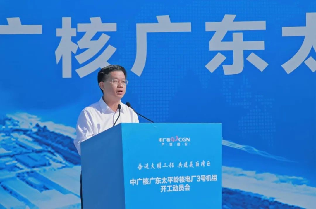 受劉吉書記委托,黎炳盛代表惠州市委、市政府和惠東縣委、縣政府,對太平嶺核電項目3號機(jī)組全面開工表示祝賀。他表示,太平嶺核電是惠州市打造“風(fēng)光核氣儲”多能互補(bǔ)清潔能源產(chǎn)業(yè)集群的重要支撐,也是落實“碳達(dá)峰碳中和”國家戰(zhàn)略、推動清潔能源高質(zhì)量發(fā)展的生力軍?;葜菔袑⑸钊胴瀼攸h中央決策部署,認(rèn)真落實省委、省政府“1310”具體部署,著力加快構(gòu)建綠色低碳產(chǎn)業(yè)體系,秉承開放合作、互利共贏的發(fā)展理念,一如既往支持中廣核在惠各項事業(yè)的發(fā)展,持續(xù)為太平嶺核電項目建設(shè)保駕護(hù)航,推動“早開工、早投產(chǎn)、早見效”。希望惠州核電和各參建單位高質(zhì)量推進(jìn)項目建設(shè),確保項目安全、優(yōu)質(zhì)、高效投產(chǎn)。希望中廣核繼續(xù)深耕惠州,共同為惠州市打造“粵港澳大灣區(qū)清潔能源中心”賦能添力。