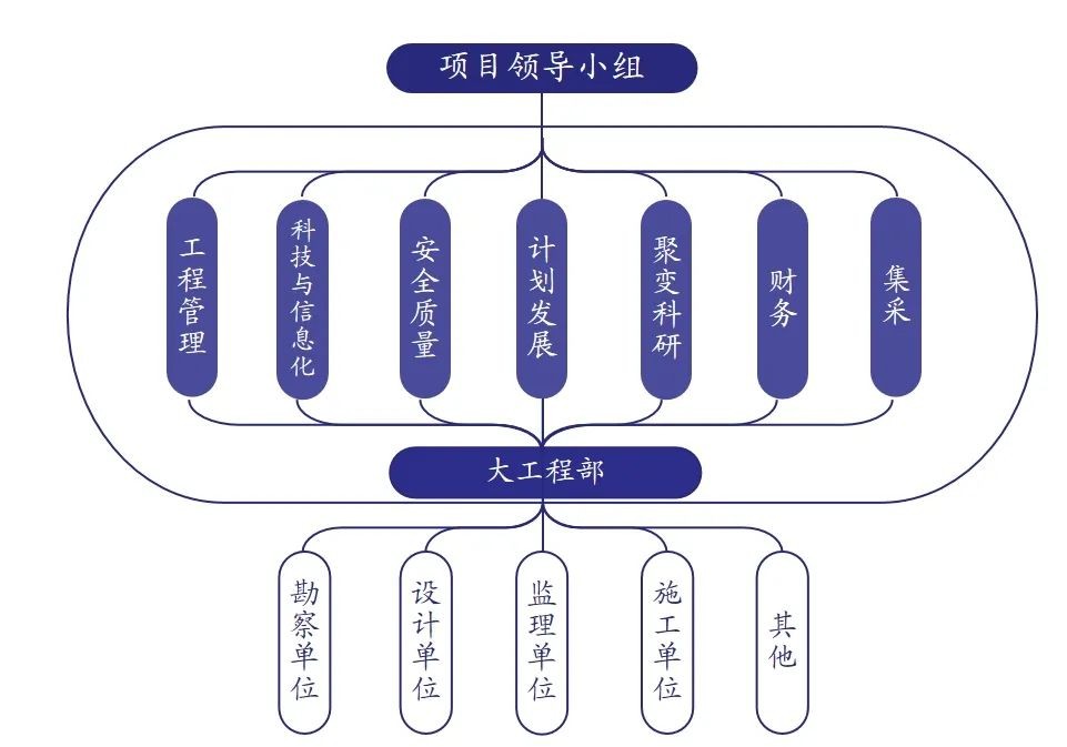 核聚變技術研發基地項目具有技術復雜度高、跨學科協作需求強、創新性要求高等特點。傳統的工程管理模式難以滿足這些需求,因此打造具有科研院所特色的“大工程部”管理模式勢在必行。結合現有人力資源和管理經驗,該院建立跨部門的“大工程部”管理模式,由項目主管院領導直接負責,成員包括院工程、計劃、科研、財務、安質等各職能部門及服務機構骨干,主導從可行性研究、初步設計、采購招標到施工、竣工驗收的全過程管理。大工程部實行雙周例會機制,定期協調工程建設中出現的設計、采購、施工、調試及安全、質量、進度、投資等領域問題與難點,“大工程部”管理模式的核心在于整合院所內部資源,打破部門壁壘,形成以項目為導向的扁平、高效管理體系,這種模式能夠顯著提升工程項目的執行效率和質量,同時為科研創新提供有力支撐。