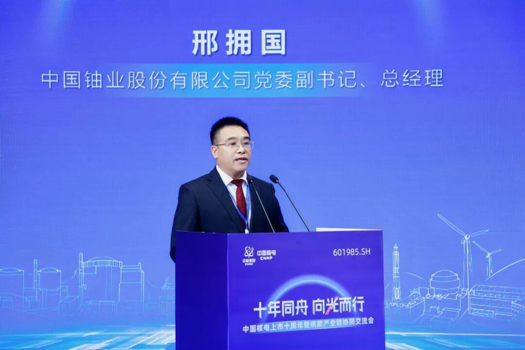 劉建平在致辭中高度肯定中國核電十年來取得的卓越成就。他指出,中國核電以實際行動踐行了集團黨組的戰略部署,以優秀的經營業績和規范的市值管理回報投資者信任。中核集團將一如既往支持中國核電在資本市場的各項工作,將中國核電打造成為中核集團上市公司的標桿,樹立中核集團“信得過、靠得住”的優秀上市品牌,讓所有投資者共享核工業發展的紅利,為實現“雙碳”目標、建設核電強國作出更大貢獻。
