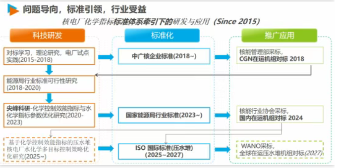這一國際標準的籌備工作歷時十年。自2015年起,大亞灣核電以主導單位身份,聯合中廣核蘇州院等集團內外多家單位組建產學研用協同創新團隊,成功攻克基礎性研究匱乏、設計原理與基準數據缺失等難題,其研發的化學指標標準,應用場景已從中廣核內部逐步拓展至國內整個核電行業。同時,團隊牽頭完成WANO化學指標升版,為此次ISO 26047標準的創建奠定了堅實基礎。項目推進過程中,項目組聯動多國專家團隊,有效化解技術理念分歧與跨國協作障礙,成功將我國核電運營實踐經驗融入國際標準體系。