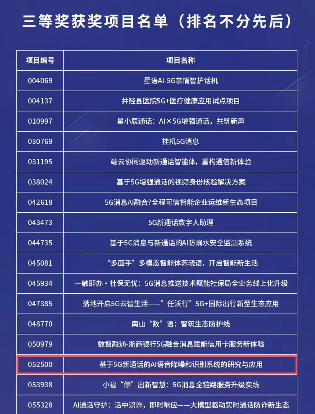 此外,福清核電參賽的另一項(xiàng)目《基于5G新通話的AI語音降噪和識別系統(tǒng)的研究與應(yīng)用》,在5G消息及新通話專題賽初賽的500余個(gè)項(xiàng)目中榮獲“5G消息及新通話專題賽”三等獎。該課題圍繞5G新通話與智能語音降噪識別技術(shù)的深度融合,依托核電5G及IMS網(wǎng)絡(luò)的高可用性與穩(wěn)定性,有效提升了終端語音降噪與識別能力,有力保障了工作現(xiàn)場通話質(zhì)量。