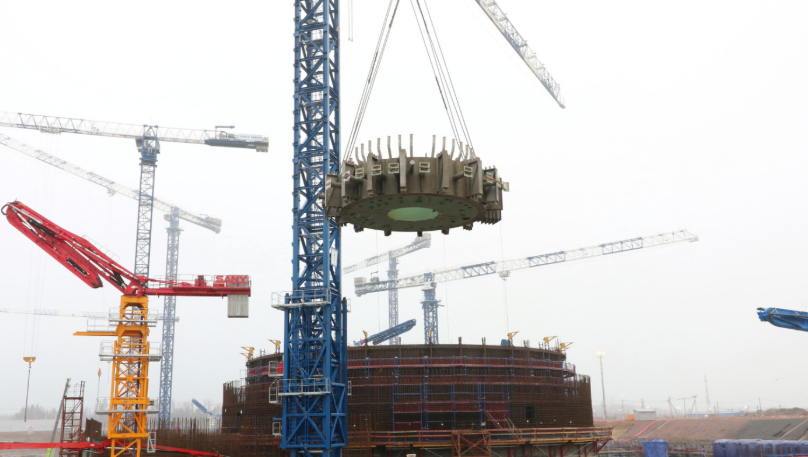 列寧格勒核電站二號機組VVER - 1200反應堆3號機組反應堆廠房內,堆芯捕集器迎來重要進展:一個由兩個鋼半環預組裝焊接而成的懸臂桁架,經供水和蒸汽排放管道、支撐腿以及供操作人員進入的走廊加固后,被安裝在堆芯捕集器本體上方的反應堆豎井內。使用重型履帶式起重機,耗時約12小時完成安裝,搬遷后的結構總重量達140噸。