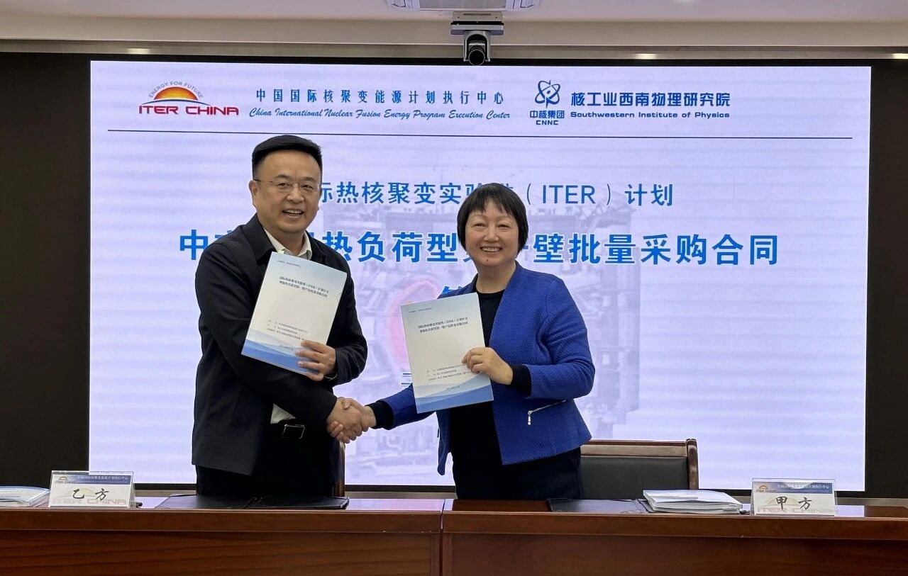 2025年12月10日,中國(guó)國(guó)際核聚變能源計(jì)劃執(zhí)行中心(簡(jiǎn)稱“核聚變中心”)與核工業(yè)西南物理研究院(簡(jiǎn)稱“西物院”)在京簽訂國(guó)際熱核聚變實(shí)驗(yàn)堆(ITER)第一壁批量制造合同。核聚變中心主任王艷表示,ITER第一壁任務(wù)難度大、工期緊,西物院要做好人力資源、設(shè)備設(shè)施等各項(xiàng)資源保障,做好進(jìn)度和質(zhì)量控制,確保如期高質(zhì)量完成任務(wù)。西物院黨委書記劉葉表示,西物院高度重視ITER第一壁任務(wù),將為任務(wù)提供有力的資源支撐,嚴(yán)格按照合同各項(xiàng)要求做好過(guò)程管理,保障合同履約時(shí)效和質(zhì)量。