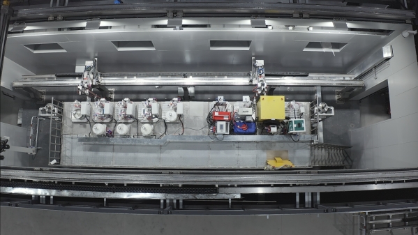 在單棒制造技術方面,考慮到快堆再生燃料釋熱性強的特點,項目團隊創新研制出立式單棒制造裝置,采用多自由度工藝實現了鈉結合工藝操作,并配套渦流檢測方法,實現了單棒鈉結合質量的自動化檢測,進一步保障了金屬燃料的能量轉化效率。