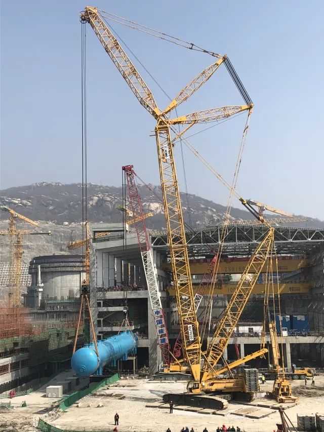 2018年3月10日15:18時,田灣5號機組除氧器引入常規島20 5m平臺,至此,全廠最長件——除氧器整體吊裝引入順利完成。這是工程公司在核電工程建設中首次整體吊裝除氧器。除氧器直徑4568mm,長45352mm,重量252t,在總結優
