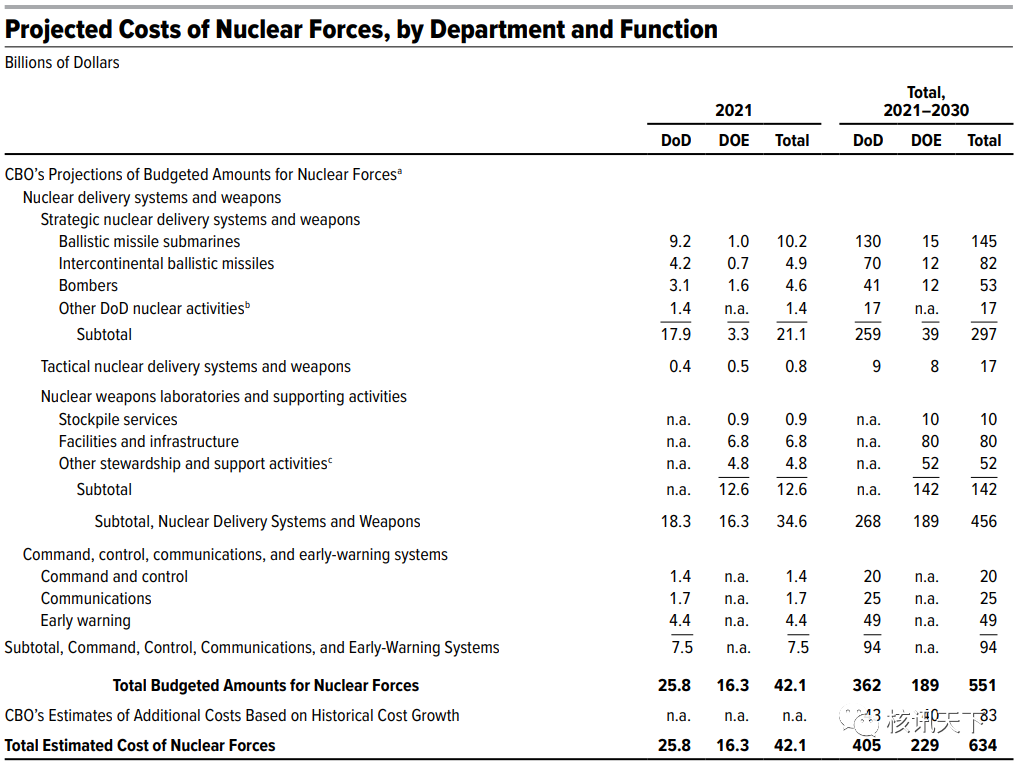 美國國會預算辦公室報告《2021-2030年美國核力量成本預估》