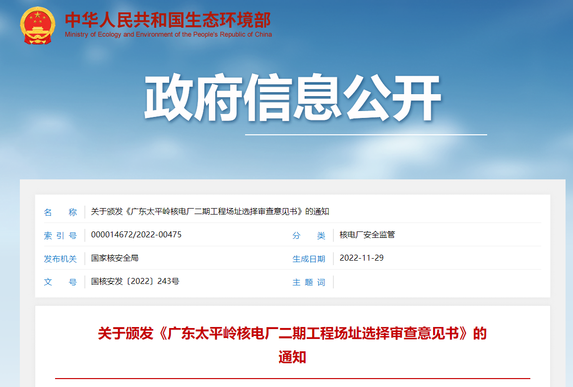 關于頒發《廣東太平嶺核電廠二期工程場址選擇審查意見書》的通知