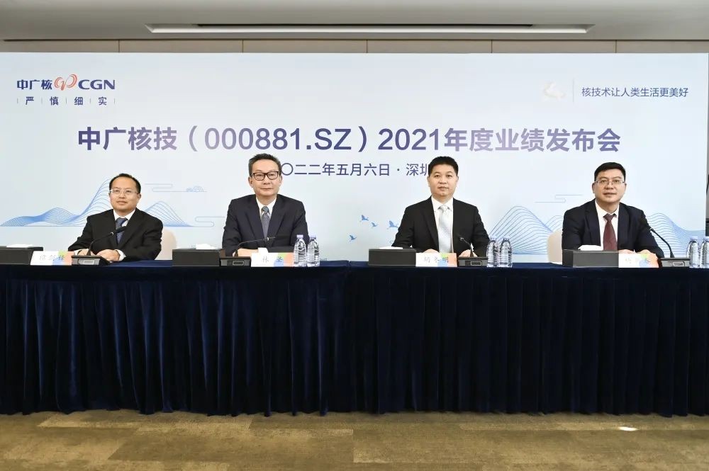 5月6日下午,中廣核核技術(shù)發(fā)展股份有限公司(以下簡稱“中廣核技(000881)”,股票代碼:000881.SZ)在深圳通過網(wǎng)絡(luò)直播的形式舉行2021年度業(yè)績發(fā)布會。公司董事長林堅,黨委書記、董事、總經(jīng)理胡冬明,總會計師譚劍鋒,董事會秘書楊新春出席發(fā)布會。