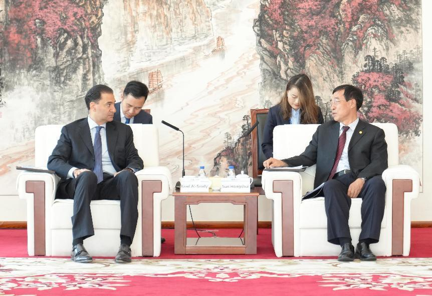 當地時間6月19日,中國能建黨委書記、董事長宋海良在阿布扎比拜會中國駐阿聯酋大使張益明。雙方圍繞習近平主席提出的中阿務實合作“八大共同行動”,就攜手推動“一帶一路”倡議同阿聯酋綠色經濟轉型需求、2050凈零排放倡議發展戰略全面對接,推動中阿兩國全面戰略伙伴關系走深走實進行交流,并達成廣泛共識。