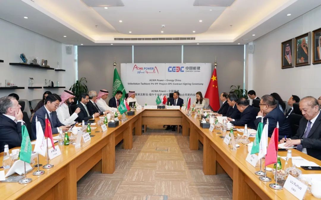 當地時間6月17日,中國能建黨委書記、董事長宋海良在利雅得與ACWA Power董事長穆罕默德·阿布納揚舉行會談。雙方就持續加強全球市場多領域合作進行深入交流,并見證烏茲別克斯坦塔什干州光伏項目簽約。