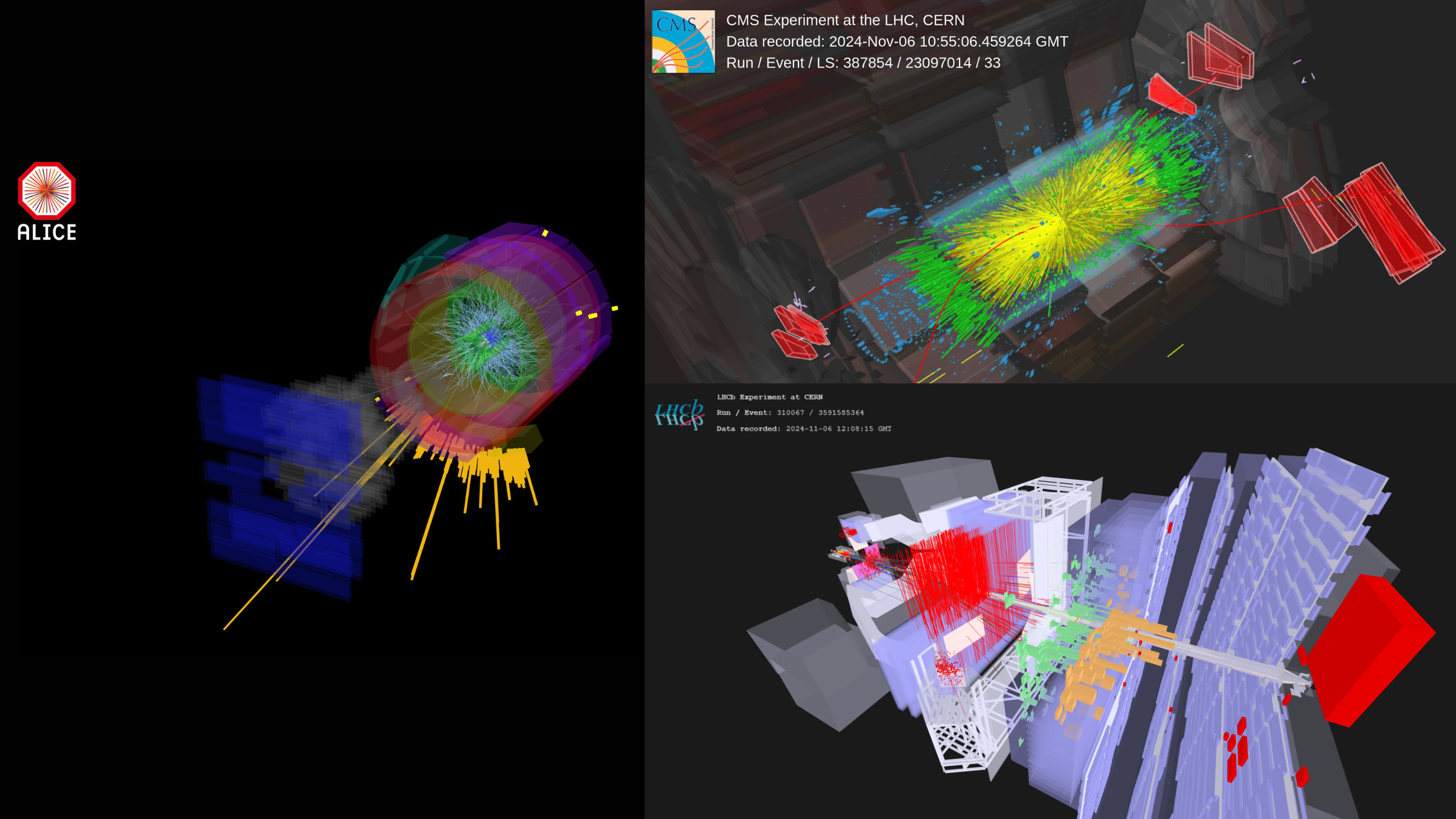 事件顯示顯示器顯示在愛麗絲,cms和lcb探測器中的鉛鉛碰撞。大型強子對撞機(LHC)就像一個非常強大的廚房,其設計是為了烹飪宇宙中最稀有和最熱的食譜,比如 夸克-膠子等離子體 大爆炸后不久就存在的物質狀態。雖然大型強子對撞機主要是碰撞質子,但它每年會碰撞重離子--比如鉛原子核--這是制備這種物質的關鍵成分。 原湯 .今天上午11時13分,在大型強子對撞機上開始了一個新的重離子運行,將含有208個中子(82個質子和126個中子)的鉛離子...
