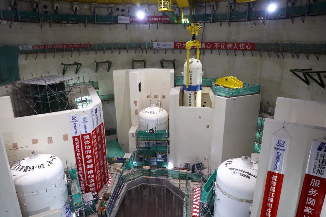 中核五公司承建的華龍一號海南昌江核電4號機組穩壓器成功吊裝就位