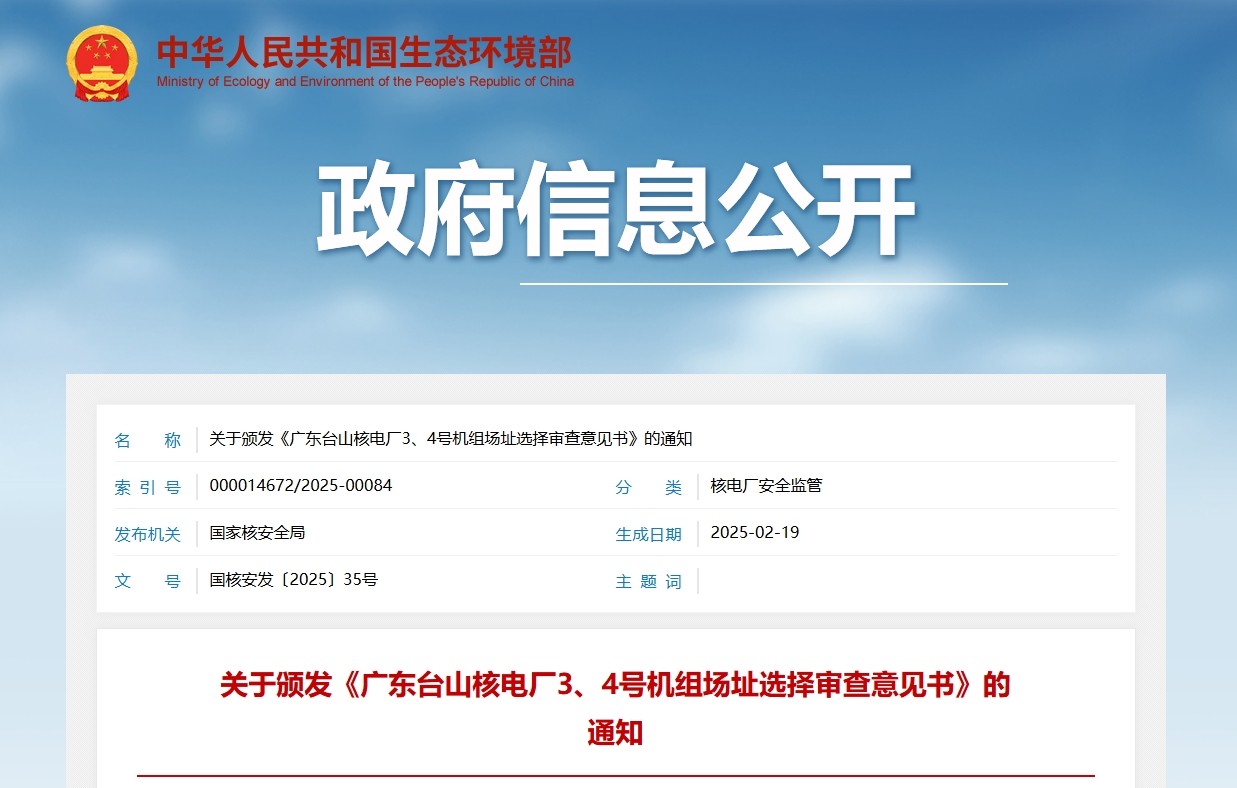關于頒發《廣東臺山核電廠3、4號機組場址選擇審查意見書》的通知