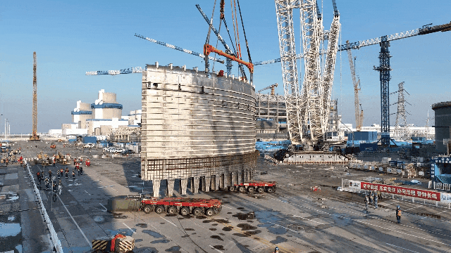 海陽(yáng)核電3號(hào)核島鋼制安全殼筒體三環(huán)順利吊裝就位