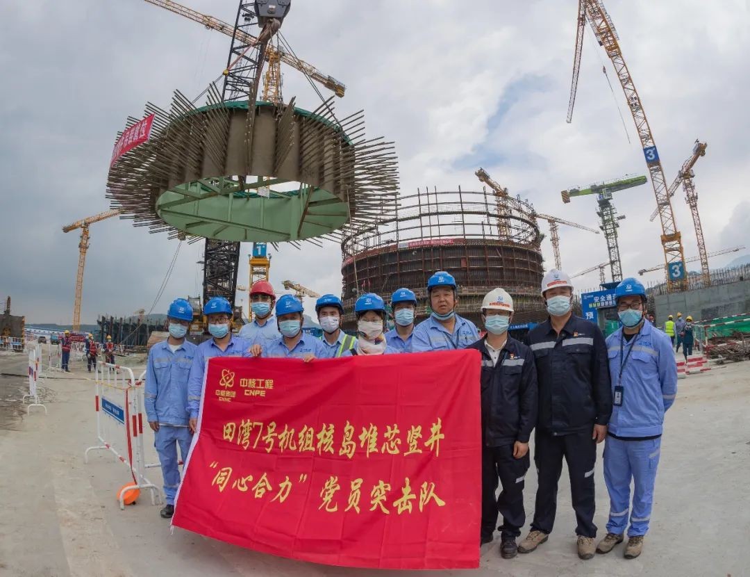 2022年7月7日上午11:30,田灣核電站7號機組支撐桁架下部預埋件順利吊裝就位。