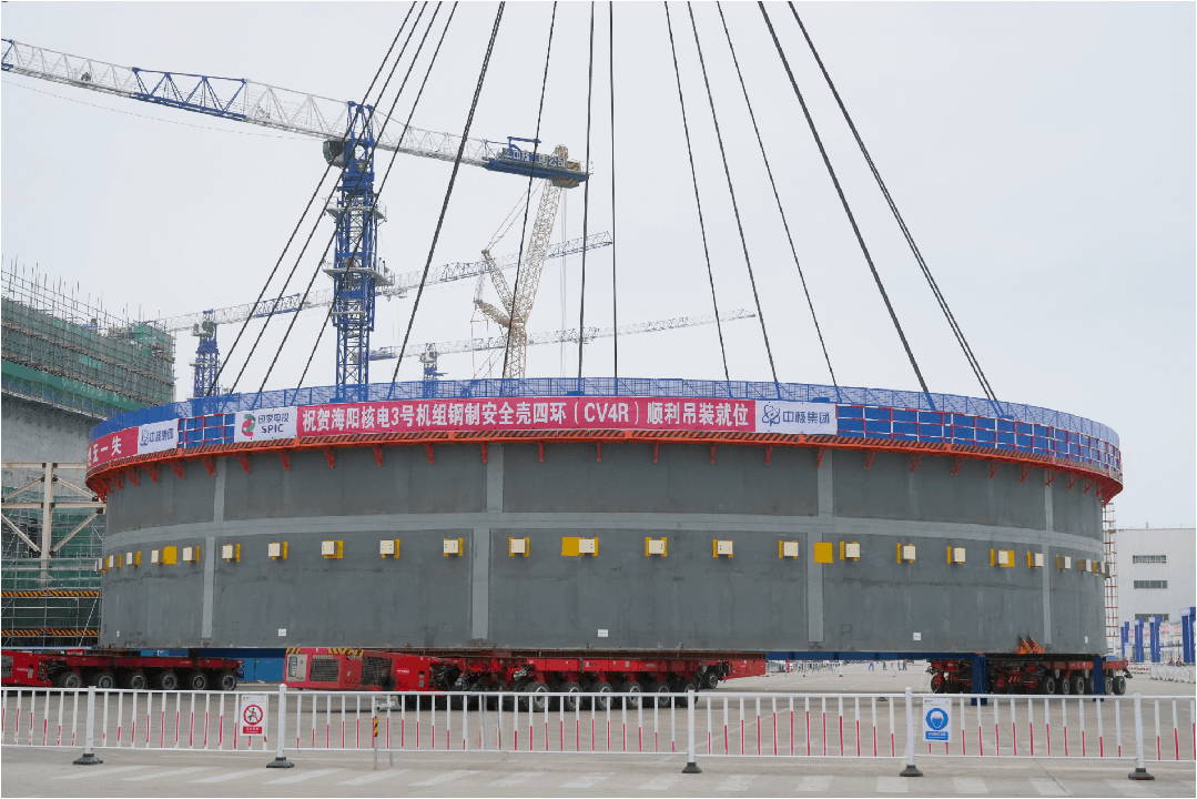 海陽核電3號核島鋼制安全殼筒體四環吊裝就位