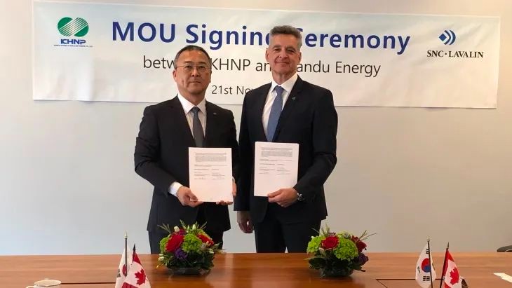 日前,韓國水電核電公司(KHNP)與加拿大坎杜能源公司(Candu Energy)簽署諒解備忘錄,雙方將在核廢物退役、數字孿生、核能技術、信息和經驗交流系統建設等方面展開合作。