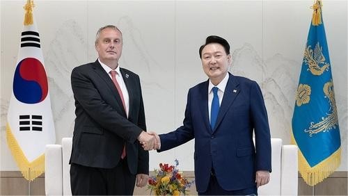 韓國總統尹錫悅4日在龍山總統府接見到訪的捷克國家安全顧問托馬斯·波亞爾。