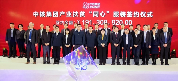 4月19日,中核集團一級集采產業扶貧推進會暨“同心”服裝簽約儀式在京舉行,共簽約24項合同,簽約金額為191,308,920元。