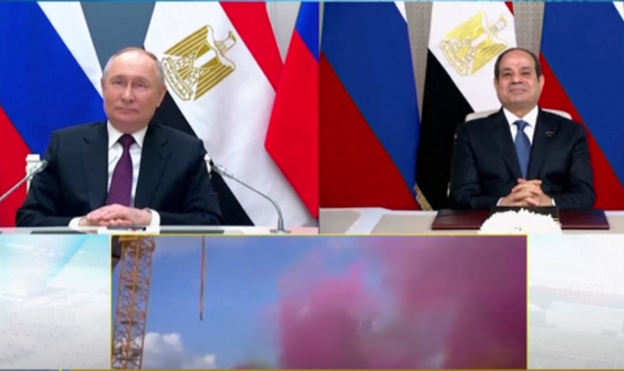 埃及總統塞西與俄羅斯總統普京23日以視頻連線的形式共同見證了埃及達巴核電站4號機組地基混凝土澆筑儀式