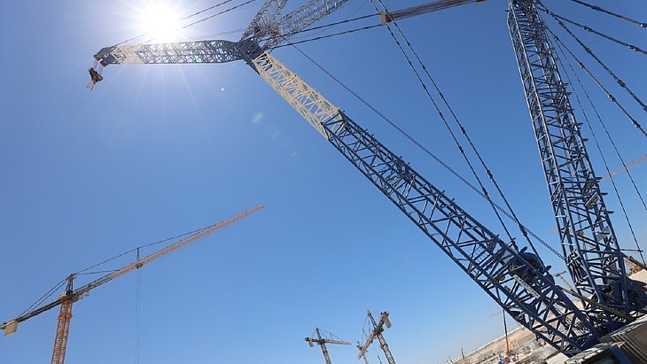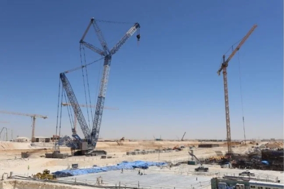 俄羅斯泰坦二號公司開羅分公司的專家已完成俄羅斯原子能公司正在建設的埃及達巴核電站履帶式起重機的組裝。中國中聯重科ZCC32000起重機(承載能力為2000噸)已通過調試并投入運行。