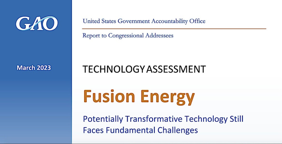 美國(guó)政府問責(zé)辦公室(GAO)2023年3月發(fā)布了新報(bào)告:《聚變能:這一潛在變革性技術(shù)仍面臨根本挑戰(zhàn)》。