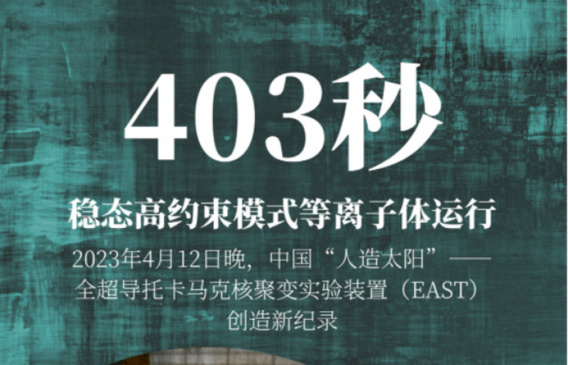 第122254次實(shí)驗(yàn)!4月12日21時(shí),中國(guó)有“人造太陽”之稱的全超導(dǎo)托卡馬克核聚變實(shí)驗(yàn)裝置(EAST)創(chuàng)造新的世界紀(jì)錄,成功實(shí)現(xiàn)穩(wěn)態(tài)高約束模式等離子體運(yùn)行403秒,對(duì)探索未來的聚變堆前沿物理問題,提升核聚變能源經(jīng)濟(jì)性、可行性,加快實(shí)現(xiàn)聚變發(fā)電具有重要意義。