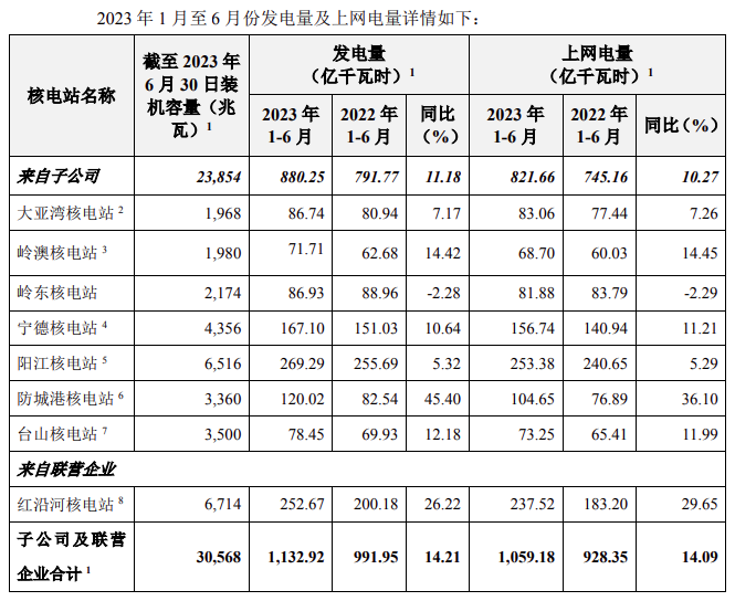 中國核電、中國廣核發(fā)布2023年上半年核電發(fā)電量情況