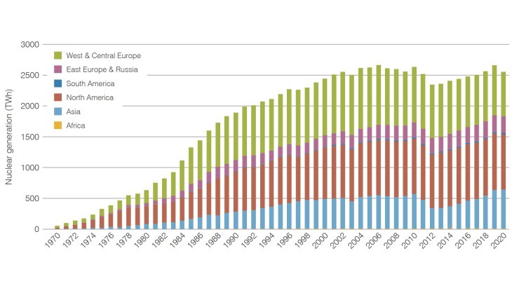 根據(jù)世界核協(xié)會發(fā)布的最新《世界核能性能報告》,2020年核反應(yīng)堆總發(fā)電量為 2553 TWh,低于2019年的 2657 TWh 。盡管下降幅度很小,但該協(xié)會總干事薩馬·畢爾巴鄂·萊昂表示,“全球核艦隊表現(xiàn)出的韌性和靈活性講述了一個非常積極的故事。”