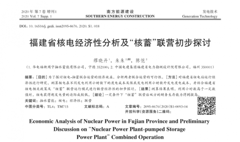 福建省核電經(jīng)濟性分析及“核蓄”聯(lián)營初步探討
