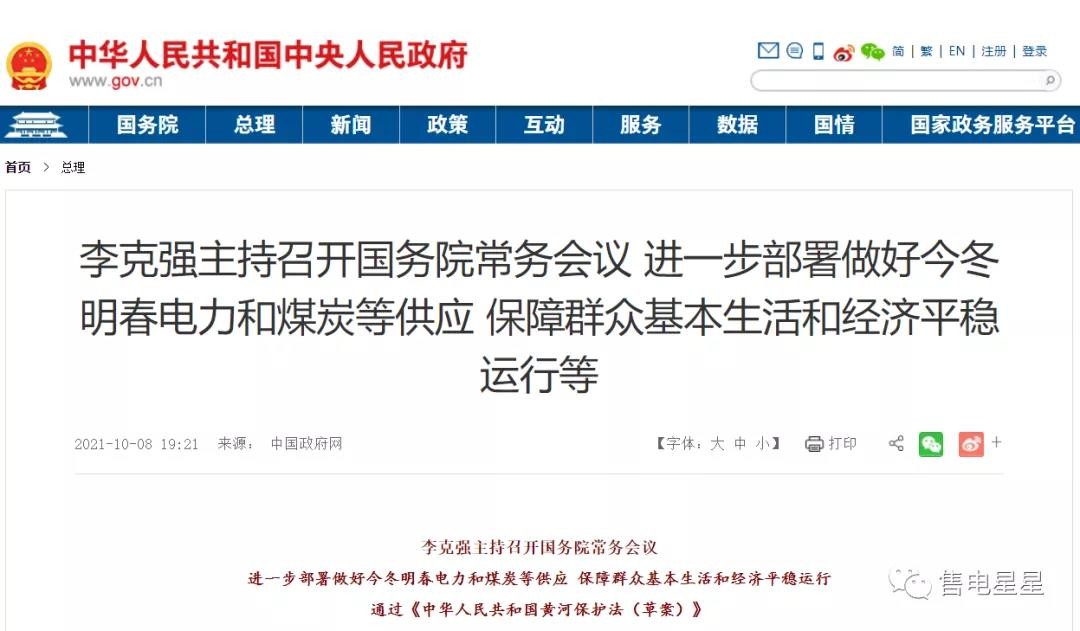 在10月8日的國務(wù)院常務(wù)會議上提出:將市場交易電價上下浮動范圍由分別不超過10%、15%,調(diào)整為原則上均不超過20%。