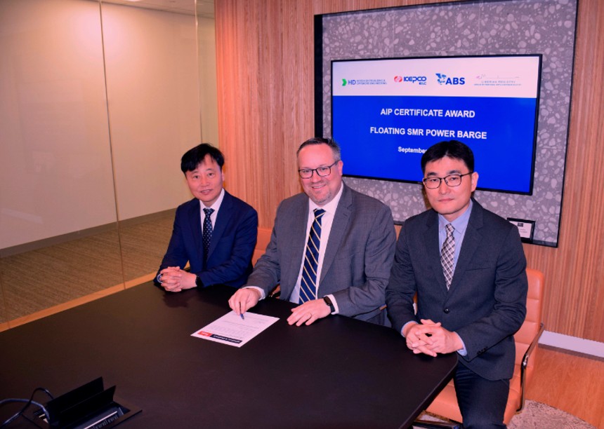 HD 韓國造船與海洋工程公司 (KSOE) 和 Kepco 工程建設公司 (Kepco E&C) 的浮動海上核電駁船新設計已獲得美國船級社 (ABS) 的原則批準 (AIP)。HD KSOE 的設計涉及一艘 240 MW SMR 動力船,配有四套 60 MW SMR。該船將是海上漂浮的SMR設施,SMR位于底部,頂部有一個平臺,可生產氫氣等無碳燃料。