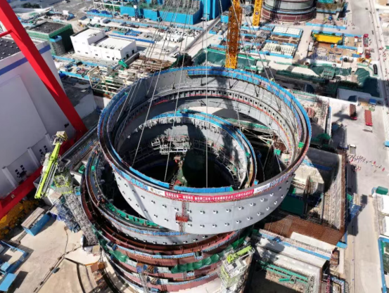廉江核電1號機組鋼制安全殼筒體三環(huán)順利吊裝就位