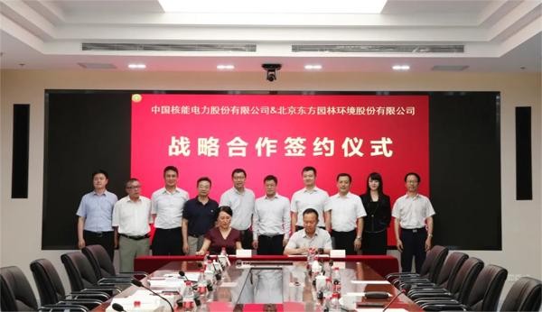 6月23日下午,北京東方園林環境股份有限公司(以下簡稱“東方園林”)與中國核能電力股份有限公司(以下簡稱“中國核電”)舉行戰略合作協議簽署儀式。東方園林總裁劉偉杰,中國核電總經理馬明澤等雙方公司主要領導出席儀式并參加會談。