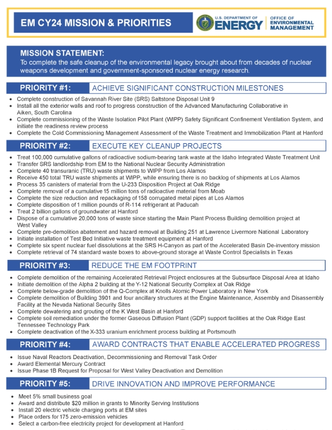 美國能源部發(fā)布2024年清污任務(wù)優(yōu)先事項