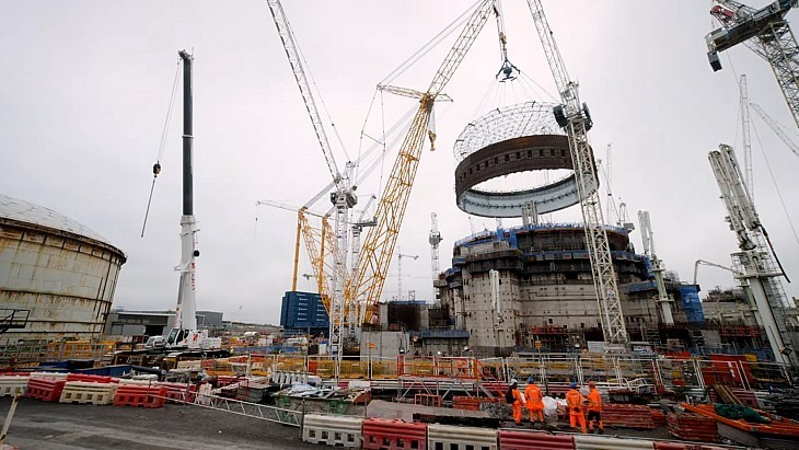 英國正在建設的欣克利角C核電站2號機組安全殼第三層鋼環和上部鋼環已安裝完畢。