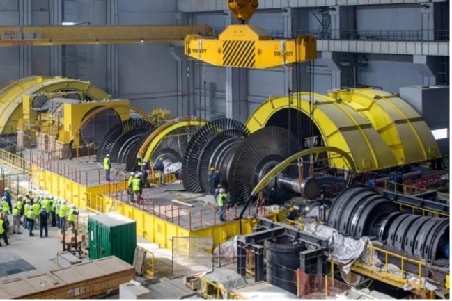 克庫尤核電廠1號機組的渦輪機已安裝了兩個低壓轉子中的最后一個。轉子總成重255噸。"轉子是用起重機安裝的。安裝轉子在技術上是一個復雜的操作,需要高精度。"這次操作是成功的,現在所有大型的主要部件的機組號機組。阿庫尤核電廠的1已安裝在設計位置。在開始測試渦輪機組之前,我們必須設置渦輪軸的線路,并確保二次電路的密度和緊密性。為此,有必要在各種技術系統上焊接3000多個連接點。"在渦輪安裝的隨后階段之一,專家將對所有部件...