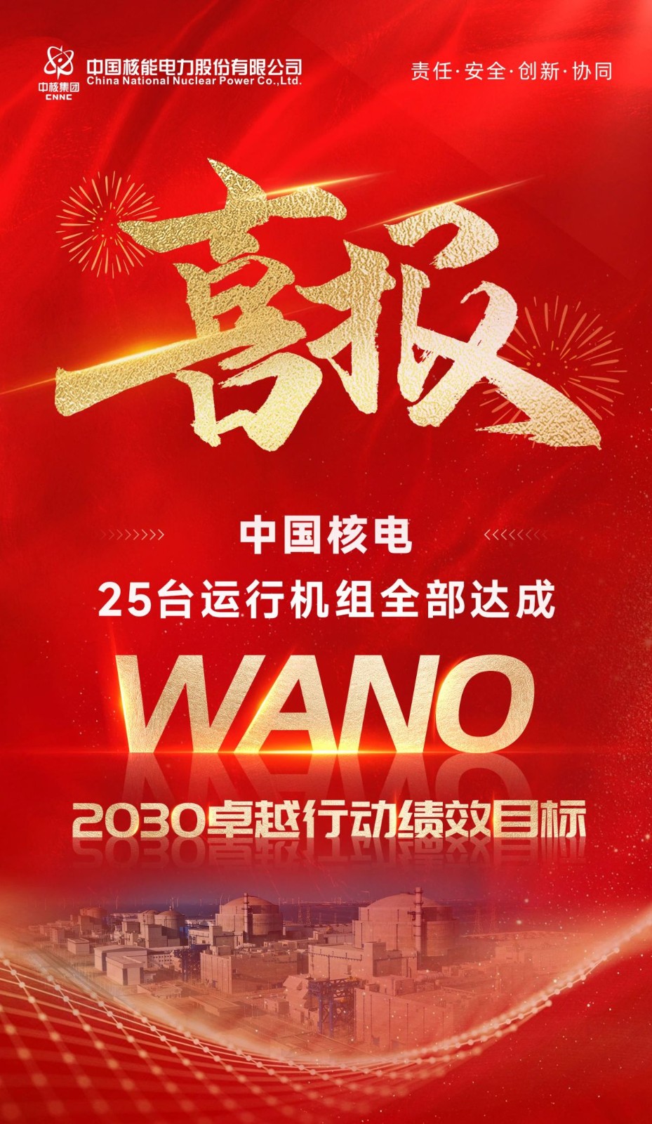中國核電25臺運行機組全部達成WANO 2030卓越行動績效目標