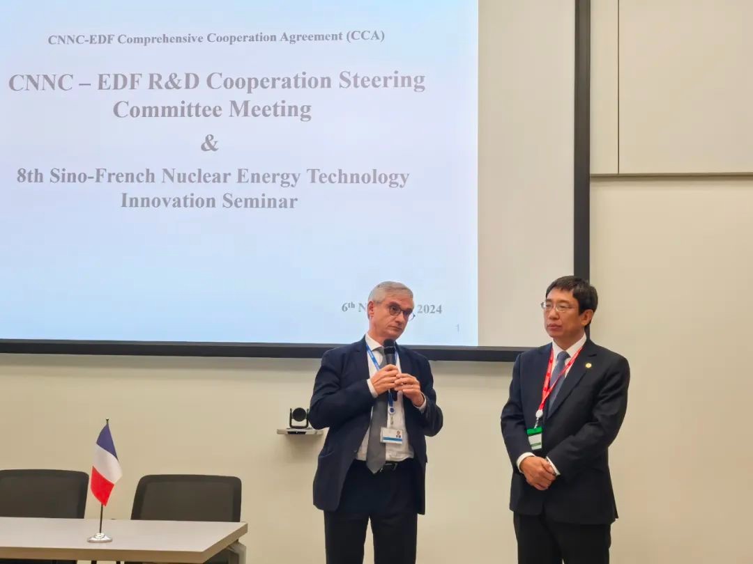 11月6日,第八屆中法核能技術創新研討會暨中核集團-法國電力集團全面合作協議(CCA)研發指導委員會在巴黎成功召開,中核集團副總經理辛鋒,法國電力集團(EDF)高級執行副總裁、首席技術官、研發部總裁Bernard SALHA出席會議并致辭。會議回顧了雙方合作八年以來取得的重要成果,并圍繞核電運行延壽退役全生命周期管理、核能多用途利用和核電數字化轉型等方向展開了深入交流,對未來進一步加強相關領域的合作提出切實可行的建議。辛鋒表示,中法兩...