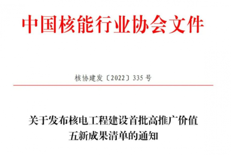 關于發布核電工程建設首批高推廣價值五新成果清單的通知