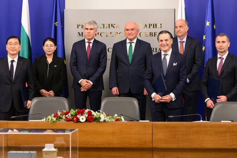 在簽字儀式之后。左起:現代工程與建筑公司總裁兼首席執行官容英珠;特派團副團長兼臨時代辦季一秋。大韓民國大使館;保加利亞能源部長弗拉迪米爾·馬利諾夫;保加利亞總理迪米特爾·格拉夫切夫;西屋能源系統高級副總裁伊萊亞斯·杰登;美國肯尼斯·默滕。駐保加利亞大使;和執行主任佩蒂奧伊凡諾夫,科茲洛杜伊NPP-新的建設。(圖片:商業電訊)...