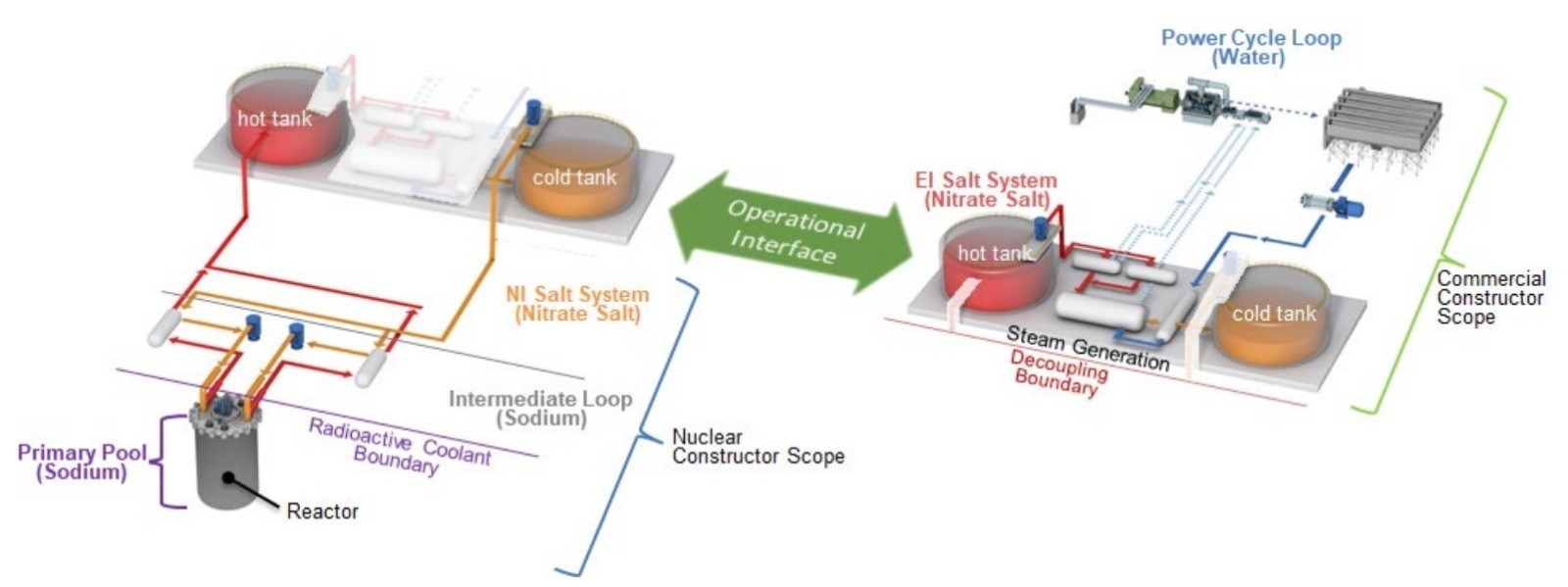 美國核管理委員會(NRC)已同意審查 TerraPower 為 Natrium 快鈉反應堆提出的所謂脫鉤策略。該公司認為該戰略的核心是其設計理念的核心,其本質是從安全角度將動力裝置的核島和動力島分開。鈉反應堆單元核島的設計使得與能量島相關的瞬變和事件不會影響其安全性(瞬態分離)。在Natrium項目中,實施分離策略的關鍵是熔鹽儲熱系統。它位于核島外,包括兩個裝有熱熔鹽和冷熔鹽的儲罐。在這種情況下,反應堆僅充當能量存儲系統充電的手段。從本質...
