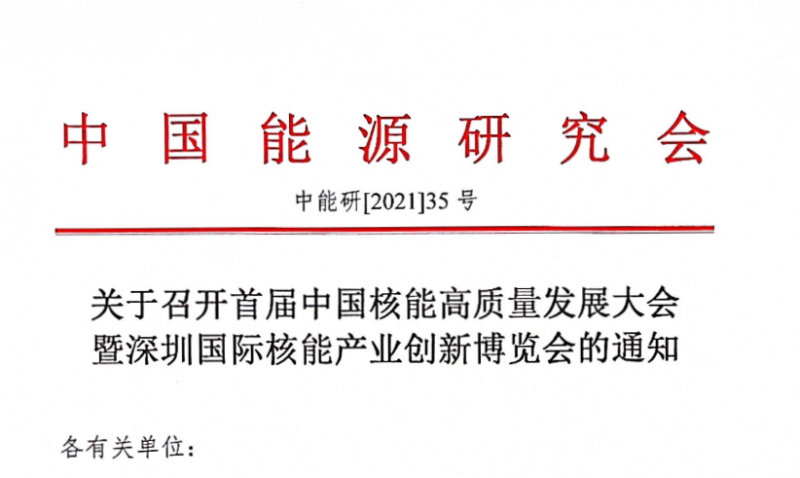 關于召開中國核能高質量發展大會暨深圳國際核能產業創新博覽會的通知