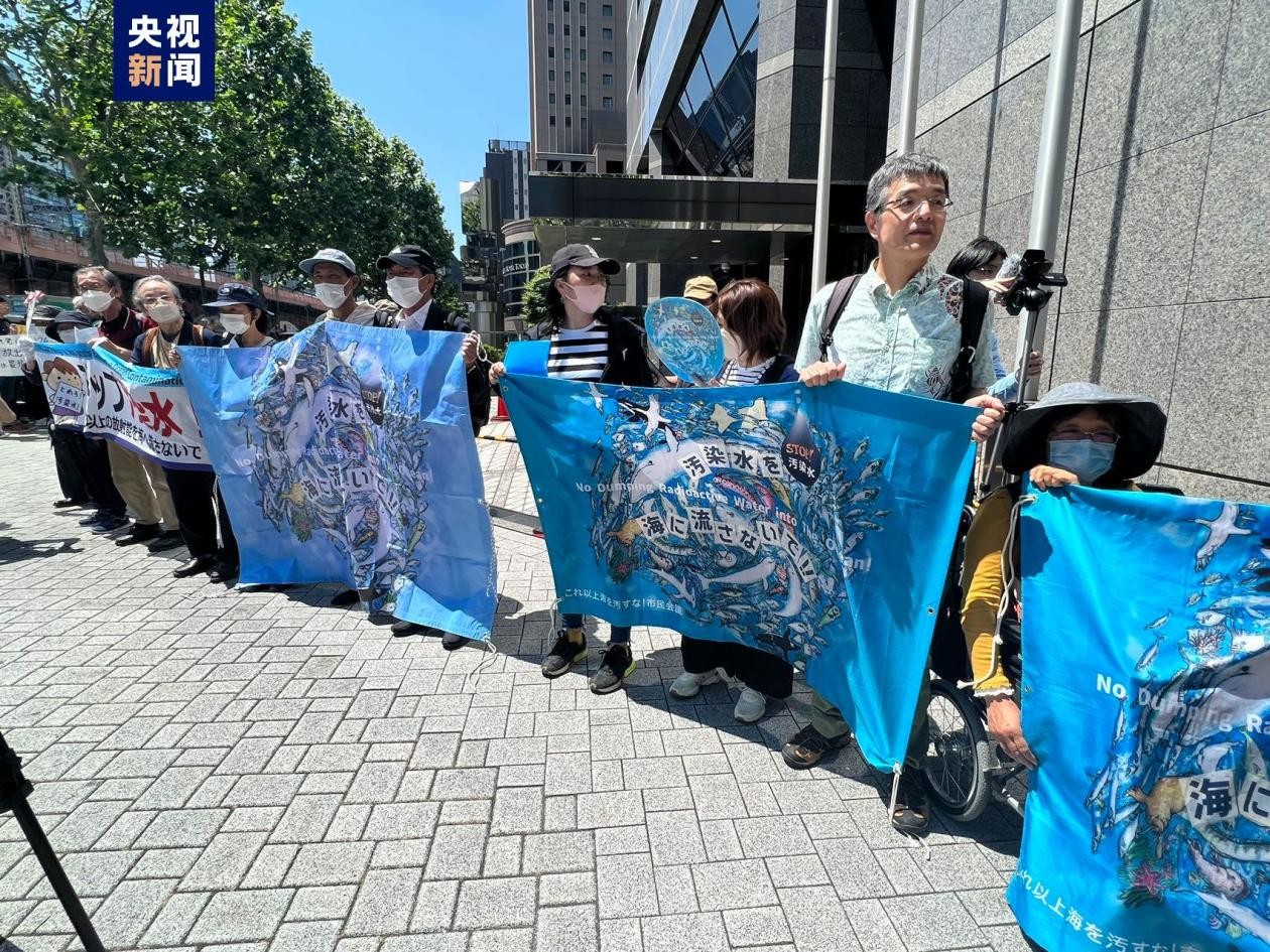 日本東電公司門前民眾集會反對福島核污染水排海計劃