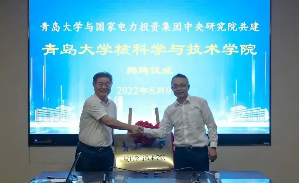 8月9日,青島大學與中央研究院共建的青島大學核科學與技術學院揭牌儀式在青島舉行。中央研究院黨委書記、董事長范霽紅出席,并與青島大學校長夏東偉共同為學院揭牌,青島大學常務副校長于永明參加活動。